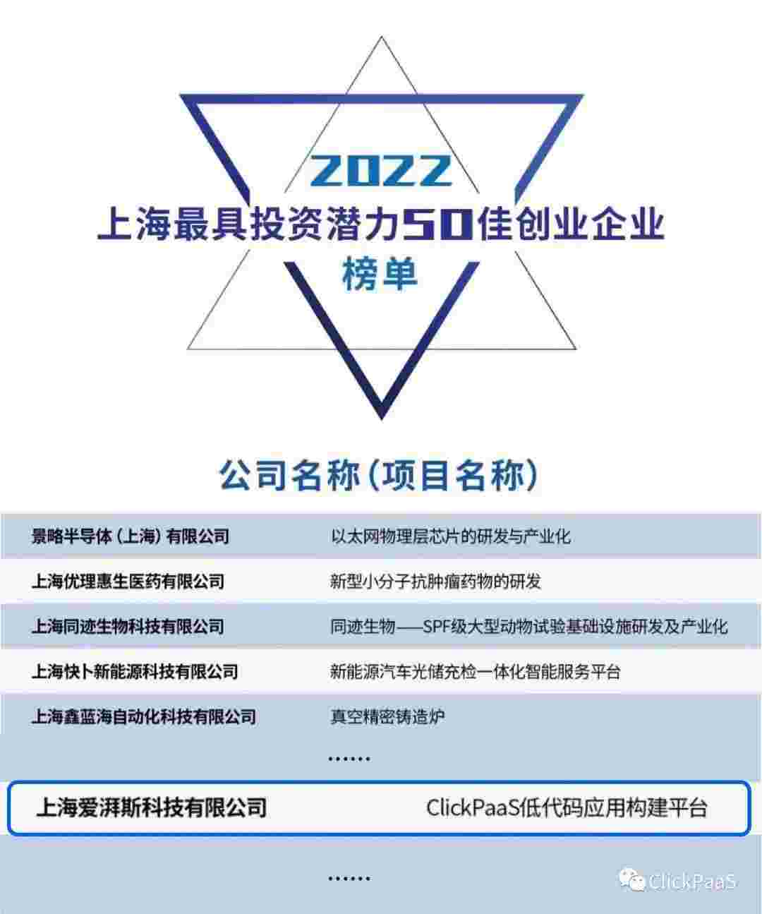 钱能钱包 作为国内低代码PaaS平台的领军企业,,与120家创企入围角逐。。期间接受了来自德同资本、、、、领中资本等知名投资机构的10位投资人组成专家评委团的背靠背盲选。。。。并最终入围“2022上海最具投资潜力50佳创业企业”榜单,,被列入“上海市重点培育创业企业库”。。。。